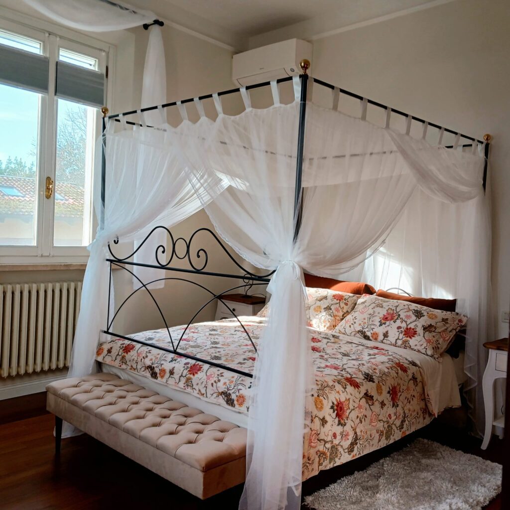 La nostra suite, situata al primo piano della villa, offre una spettacolare vista panoramica, anche dall’annesso balconcino abitabile privato. E´ ampia 60 mq e sul letto in ferro battuto (che evoca il nostro stile country chic) dove potrete riposare o rilassarvi sull´ampio divano che, in caso di necessita, può diventare un comodo letto per accogliere due ulteriori ospiti. E´ fornita di un televisore a schermo piatto di 50 pollici, minibar, aria condizionata, cassaforte e di una camera guardaroba privata. Il bagno “extra large” dispone di doppio lavandino, doccia king size, kit di cortesia e asciugacapelli.